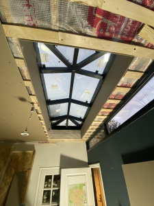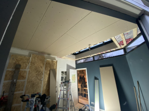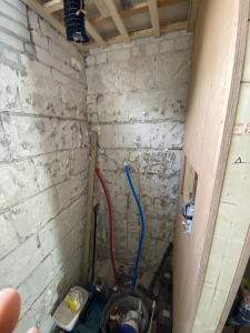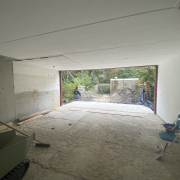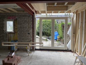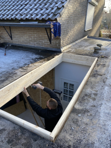 Een belangrijk onderdeel van het project was het doorbreken van een draagmuur om de nieuwe aanbouw te integreren met de bestaande woning. Dit vraagt om precisie en vakmanschap, omdat de structurele integriteit van de woning moet worden gewaarborgd. We hebben stempels geplaatst om de bovenliggende verdiepingen te ondersteunen tijdens het doorbreken van de muur. Hierdoor konden de dragende elementen van de woning veilig worden aangepast.