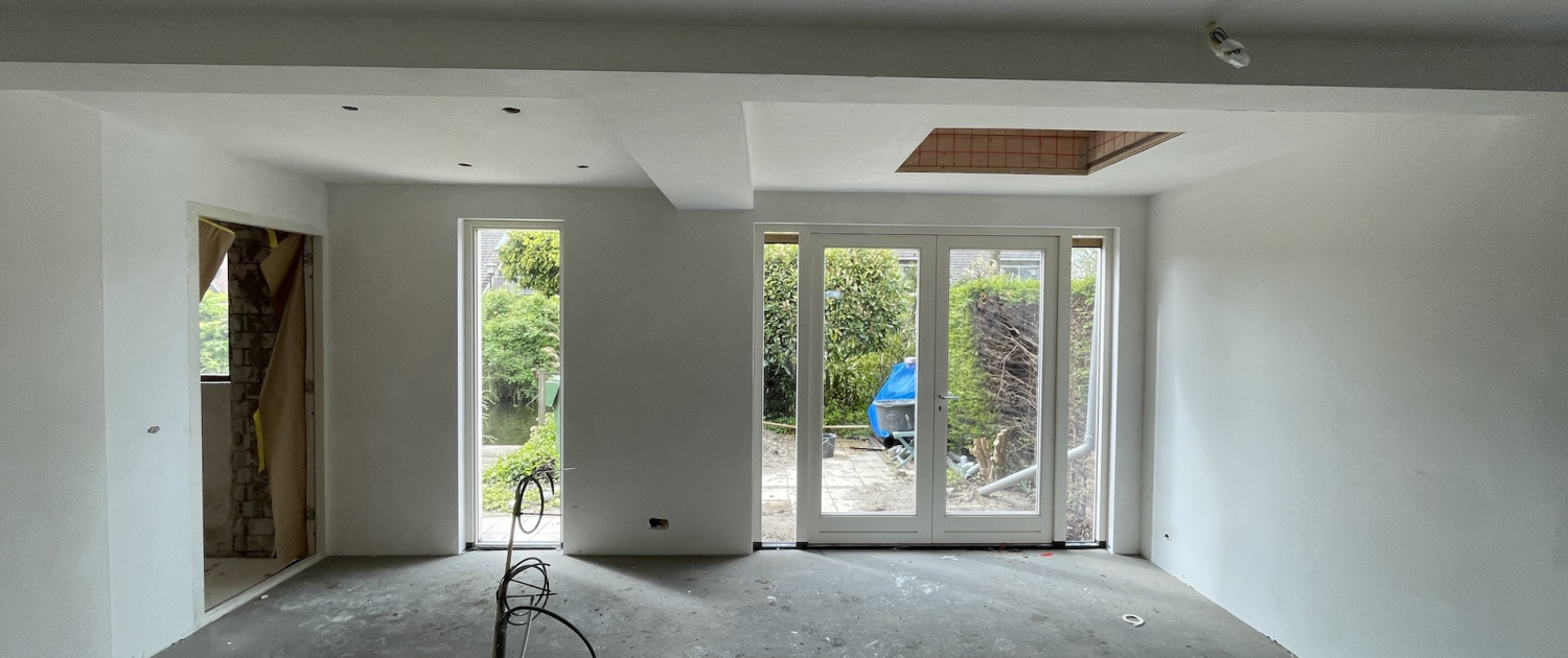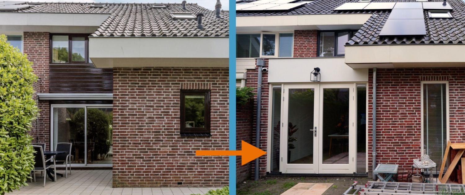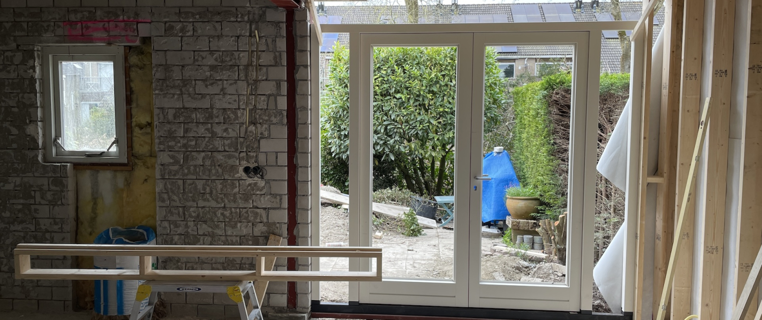 - Een uitbouw met vloerverwarming en openslaande deuren in Heerhugowaard.